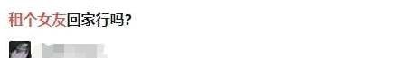 乍看之下,“租个女友回家过年”似乎可以成为缓解这种压力和尴尬局面最好的方式之一:既能够让家人得以安抚并攀谈与祝福自己幸福姻缘话题以及交流八卦信息(男生)或者让其展示自己已经进入稳定恋爱状态,并通过多角度展示彼此间密切关系、甜蜜互动来打消外界诸如“你怎么还没找对象?”、“难道你不着急结婚吗?”等问题。