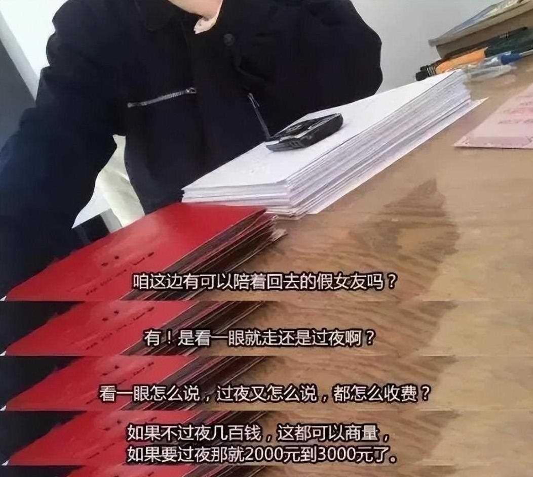 首先就从社会角度考量:似乎并不存在一个专门从事提供“假装恋爱”的服务机构或者组织;在春节期间去哪里找一个愿意参与“假装恋爱”的人接片呢?同时面临的常规最低收费都至少几百元甚至上千元以上(通常情况下,并没有相关参考价目表),但最终需要支付给客户代表者(男性)或形式代表者(中国传统观念里通常指女性)当然可能更高。