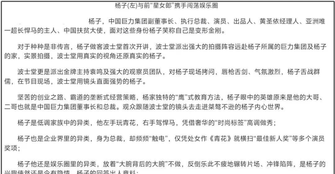 而媒体报道杨子时,也往往侧重于渲染他“富豪”身份,忽略其背后复杂性,报道杨子与黄圣依婚姻时,媒体 often 会使用“嫁入豪门”、“王子与公主”等字眼,进一步强化杨子“富豪”形象