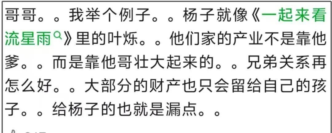 人们发现事情并没有那么简单,虽然杨子持有股份,但公司实际控制权却掌握他哥哥手中,杨子家族企业中并没有真正话语权,他财富也并非完全独立