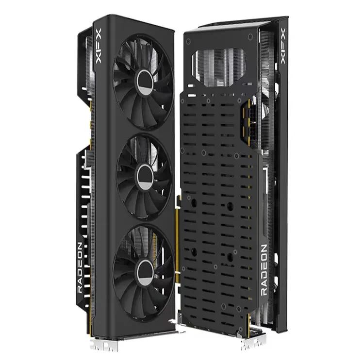 RX 7900XTX是AMD最新的旗舰显卡,基于RDNA 3架构。该显卡拥有6144个流处理器和24GB GDDR6显存,显存位宽为384位。这款显卡在4K分辨率下的游戏表现非常出色,能够与NVIDIA的RTX 4080相抗衡。7900XTX还大幅提升了光线追踪性能,并支持AMD的FSR 3.0技术,使得它在游戏和专业应用中都具备极高的性价比。它还引入了全新的Infinity Cache技术,进一步提升了带宽效率,使得显卡在高分辨率下运行更加流畅。