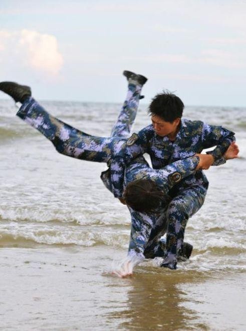 想想你自己,在已经负重20多斤的情况下仍然要攀爬绳索,负重爬行10多米,这是得要多大的毅力和体能,就算即使体能很好的高大青壮年也未必受得了这种苦。然而郭婧却选择打碎了牙往肚子里咽,吞没痛苦,学习着该如何踩绳索发最大的力?怎样挺腰收腿成为之后郭婧一遍遍摸索的动作要领。短短两天时间,郭婧刚开始从崭新的一双手套变成磨破得破旧不堪的烂手套,里面的手掌,因为摩擦和太过用力磨出了一个个血迹斑斑的血泡。