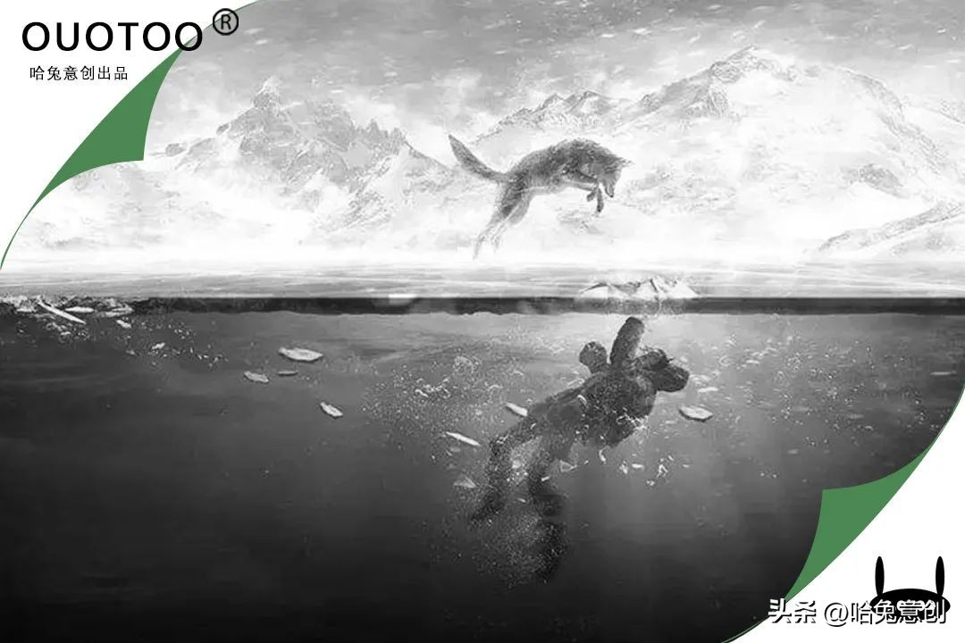 印象最深的场景,是归途之中,主人公在冰河上遇险,生死一线时,这只狼一跃而起,坠入冰河援助少年。