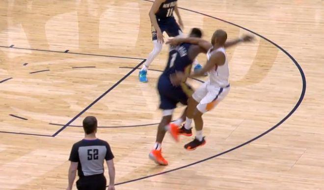 加时赛里,保罗出手三分球,腿部跟锡安发生了接触,裁判第一时间吹罚锡安防守犯规,鹈鹕主帅威利-格林挑战成功,保罗被改判为进攻犯规,这刚好是保罗本场第6犯,他也因此被罚下!鹈鹕凭借冲击力扩大两球以上领先,并最终豪取7连胜,继续巩固西部第一的位置。