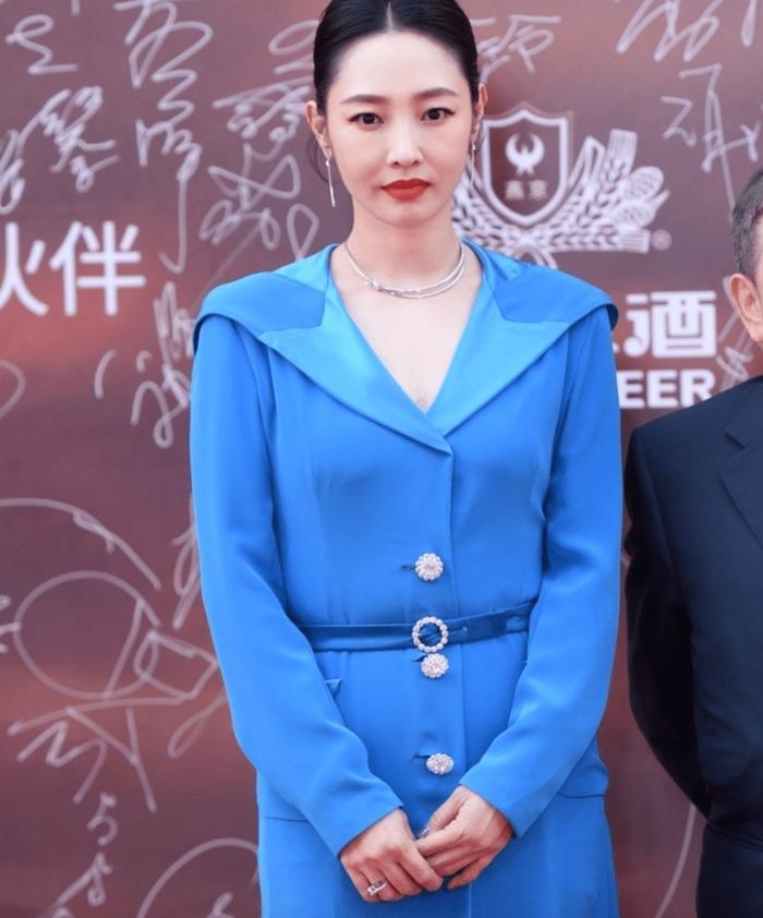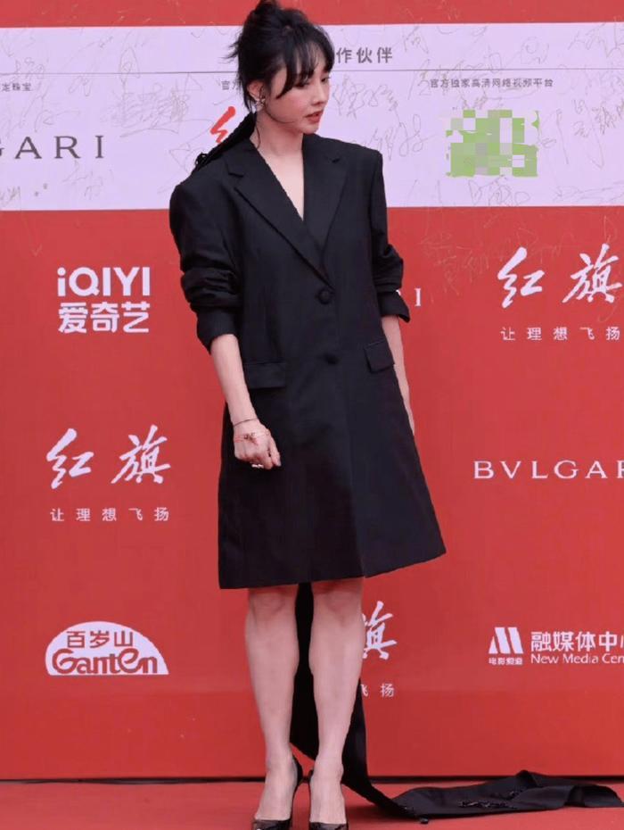 除了这次的蓝色长袍,四月份白百何参加北京国际电影节时,她的黑色西装裙,就相当一言难尽。