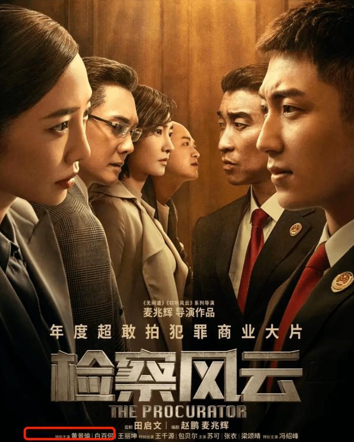 今年五一,电影《检察风云》上映,白百何的名字排在黄景瑜后面。