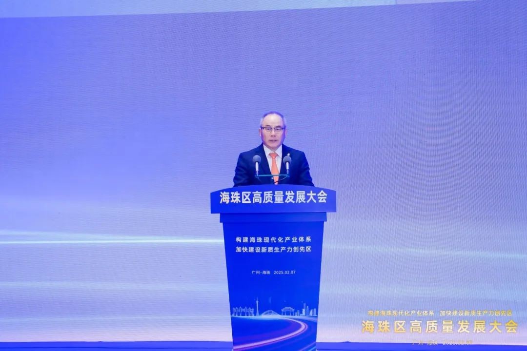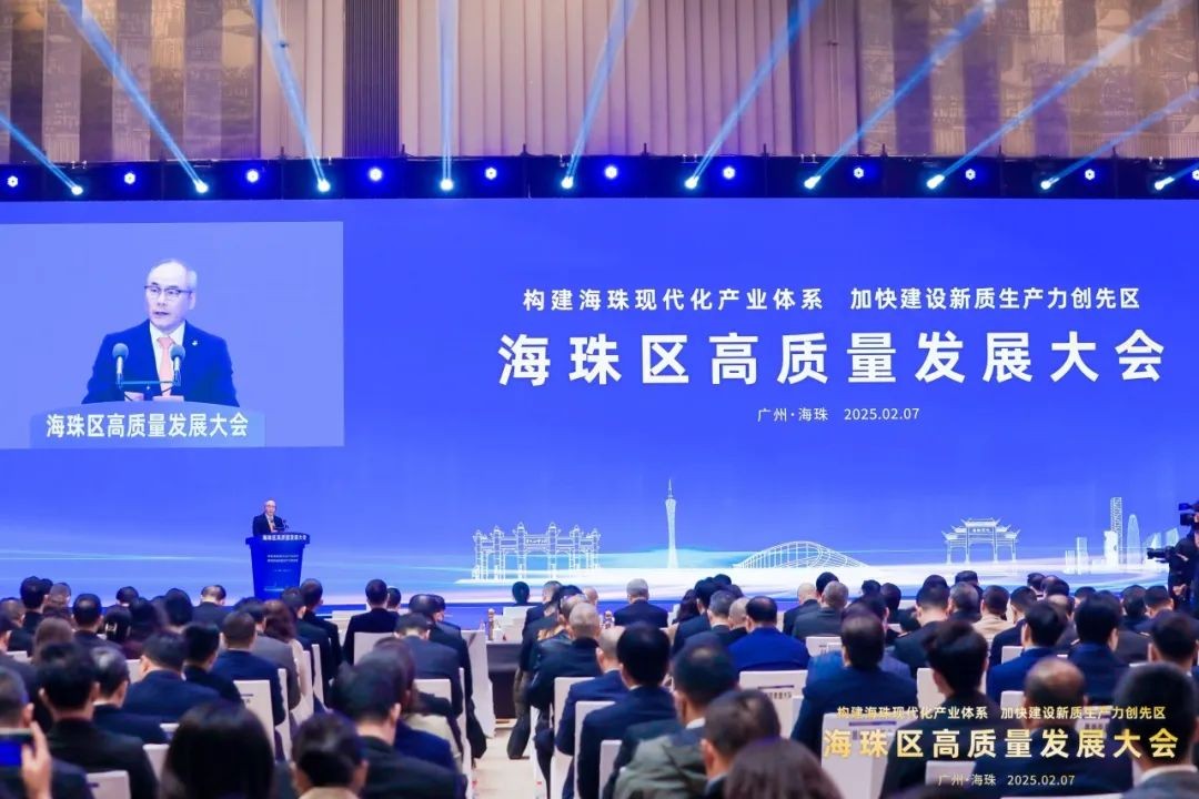 2025年2月7日,主题为“构建海珠现代化产业体系,加快建设新质生产力创先区”的海珠区高质量发展大会在广交会堂召开。广州市工商联副主席、海珠区工商联主席、广州华新集团有限公司董事局主席、广州市社会组织联合会会长冯耀良受邀出席,并在会上发言。