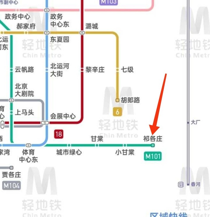 从规划图中可以看出,M101由直通大厂祁各庄。