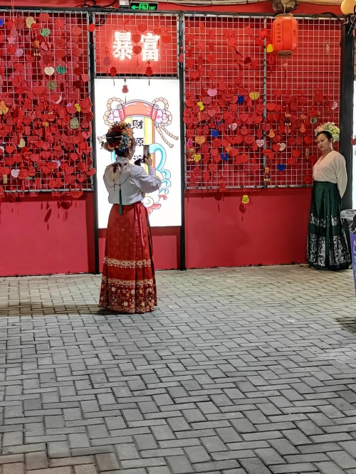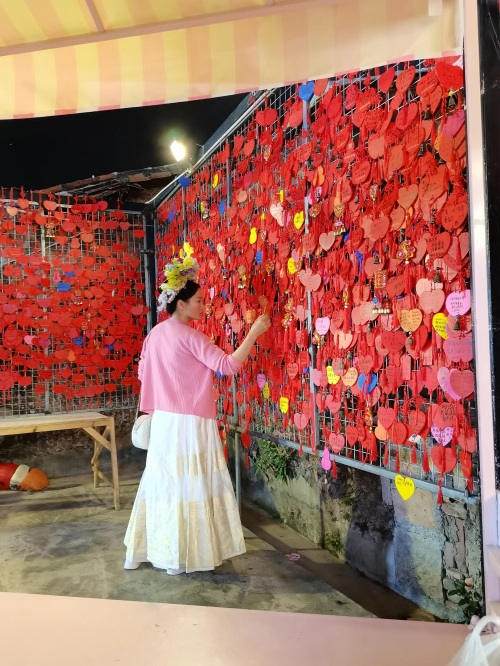 小西埕是个非常文艺的地方。门口红色许愿墙已经成了一道风景,游客可以在“众神办事处”扫码购买许愿牌,写下自己美好的心愿。许愿牌由红绳吊着,从入门处一直挂满了整个景点,许多游客在此驻足打卡拍照。
