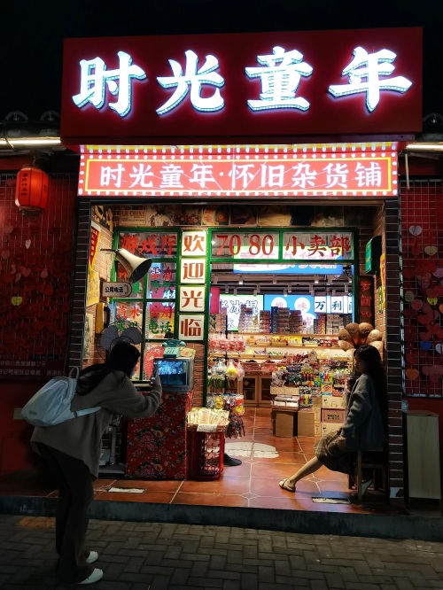 边上一间时光童年 ~怀旧杂货铺,许多零食玩具,有着70后、80后的童年回忆,离不开那些曾经让他们欢笑开怀的味道……如果时光可以暂停,那一定就在这里。