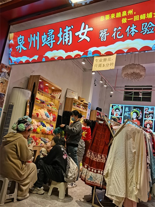 #文章首发挑战赛#泉州西街小西埕,一个不可错过的网红打卡地。小西埕位于泉州市鲤城区西街中段,从巷子往里走,看到一家名叫“泉州蟳埔女 簪花体验馆”的小店,几个游客正在那做簪花,“今生簪花,来世漂亮”体验做个漂亮的蟳埔女。