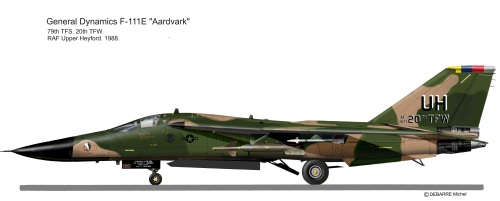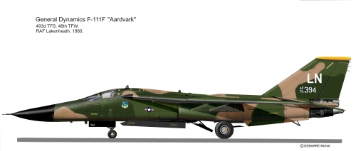 F-111E:是在F-111A基础上,重新设计了进气道,改善了发动机和进气道匹配,最大速度提升到2.2马赫以上。共生产了94架。