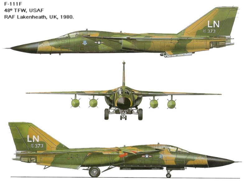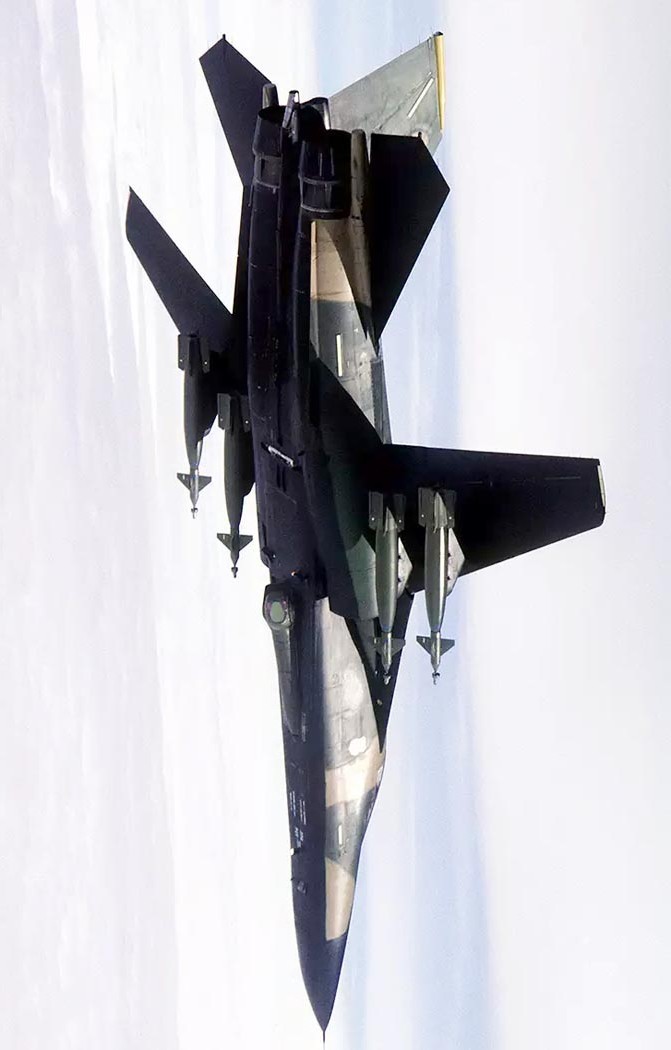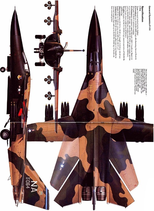 F-111F:装TF30-P-100发动机,推力增加25%,提高了飞机的推重比,共生产了106架,1976年交付完毕。