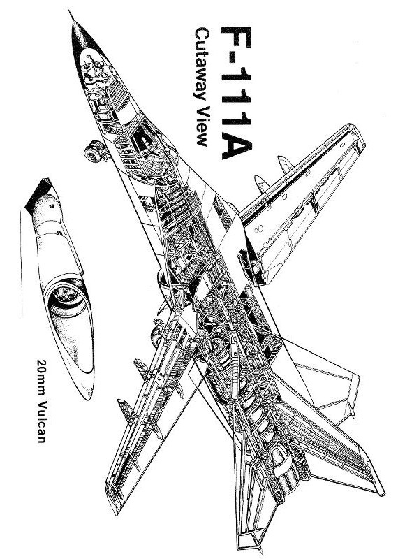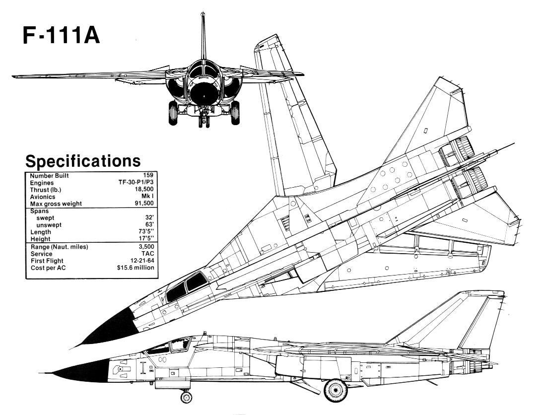 F-111A:空军型,共生产141架,装备TF-30-0-3发动机。交付时尚未完全达到作战能力,7年后才勉强合格。该型机一直受到发动机问题困扰,最后在NASA、空军和通用动力公司联合研究下对主进气道进行重新设计。