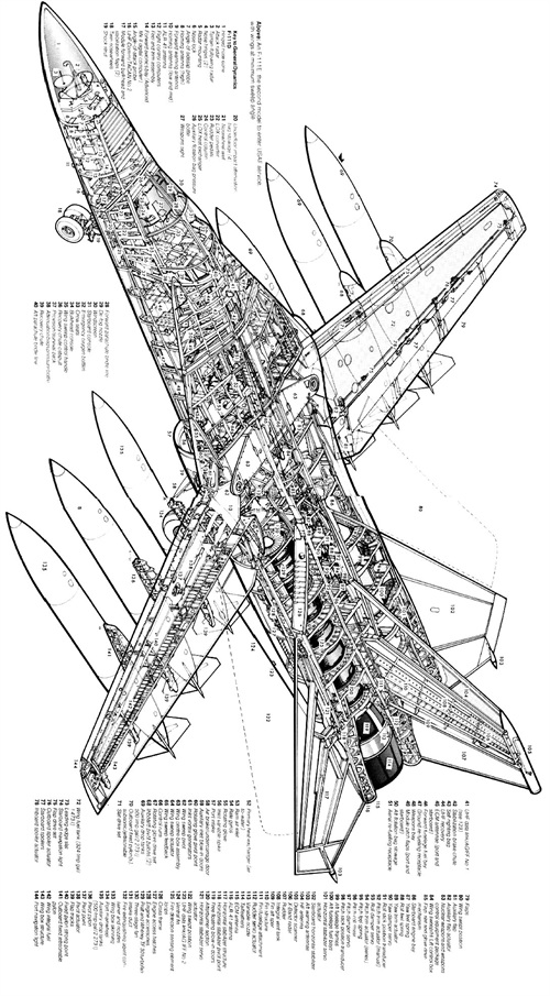 美国通用动力公司在1962年开发的战斗轰炸机,1964年12月首飞,是世界上第一种大规模服役的变后掠翼作战飞机。关于土豚设计竞标时候的勾心斗角,可参见我在“滚回绘图板”系列第75-82期的详解。1967年10月交付使用。先后有A、B、C、D、E、F、K和FB-111A、EF-111等主要型号,总共生产了562架。距离其几千架采购称霸四代机的初衷相距甚远。国外用户仅有皇家澳大利亚空军。