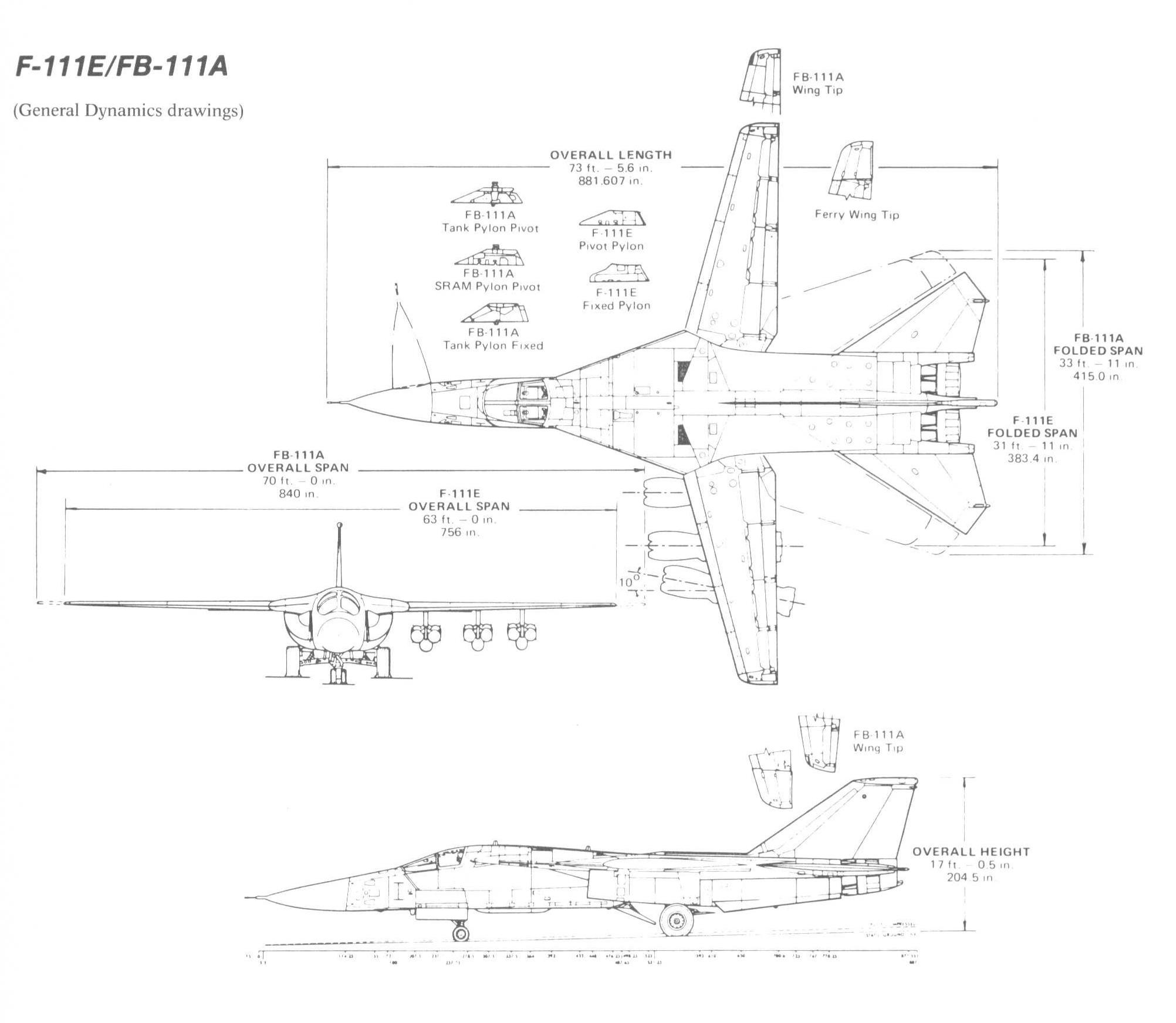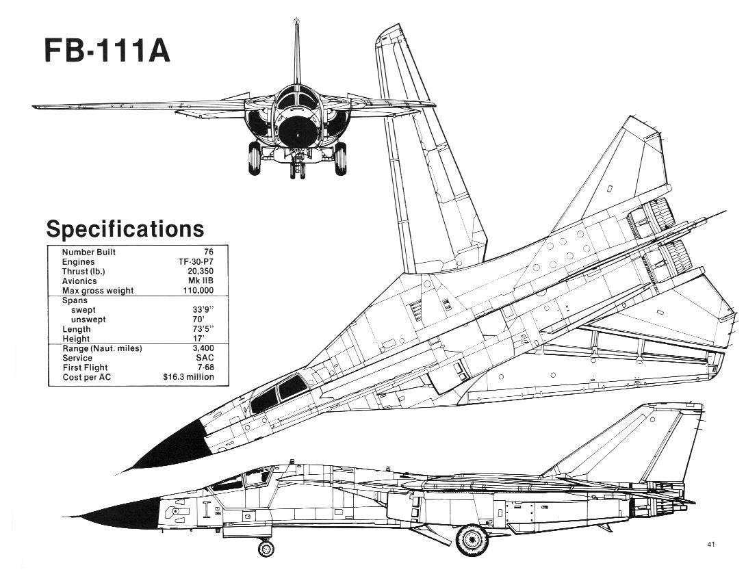 FB-111A:战略空军司令部使用的核打击型号,使用SAC Mark IIB航空电子套件。沿用A系统改进的攻击雷达,以及将在F-111D上使用的组件,包括惯性导航系统,数字计算机和多功能显示。除核炸弹外,武器为波音AGM-69 短距离攻击导弹,弹仓携带两个,另外四个挂载。
