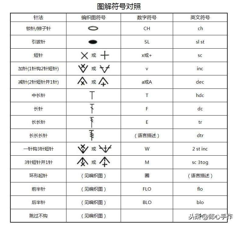 ①英文符号用的比较少,一般在你看英文的编织书的时候用得到。