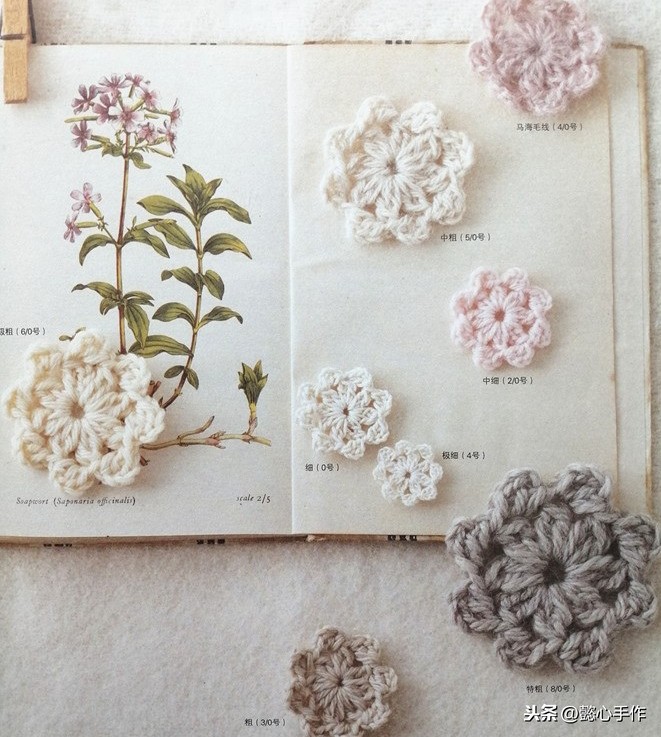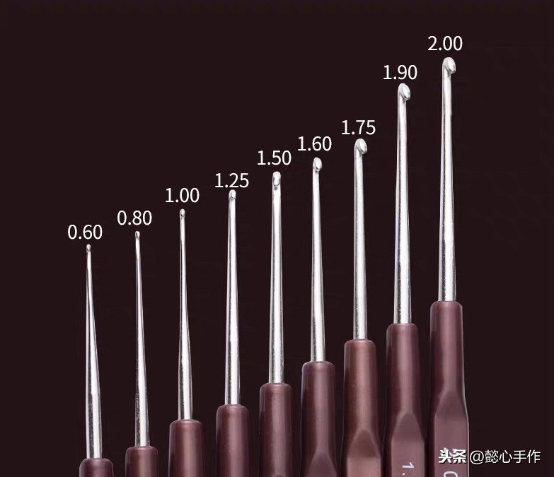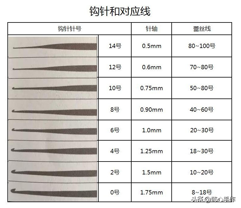 ②蕾丝钩针有以下几个针号:针号越大,针轴越小,对应的线越细。
