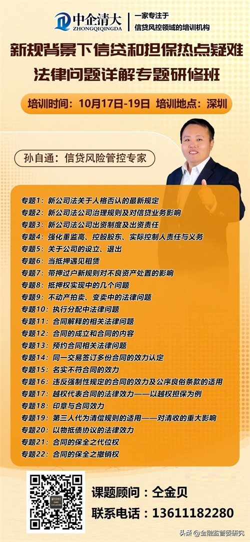 10月-深圳:新规背景下信贷和担保热点疑难法律问题--(22个专题+130个实务问题)详解专题研修班