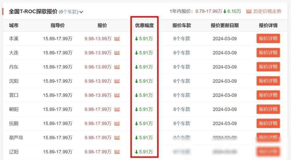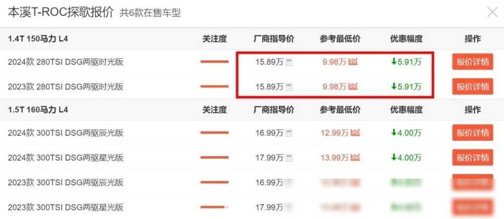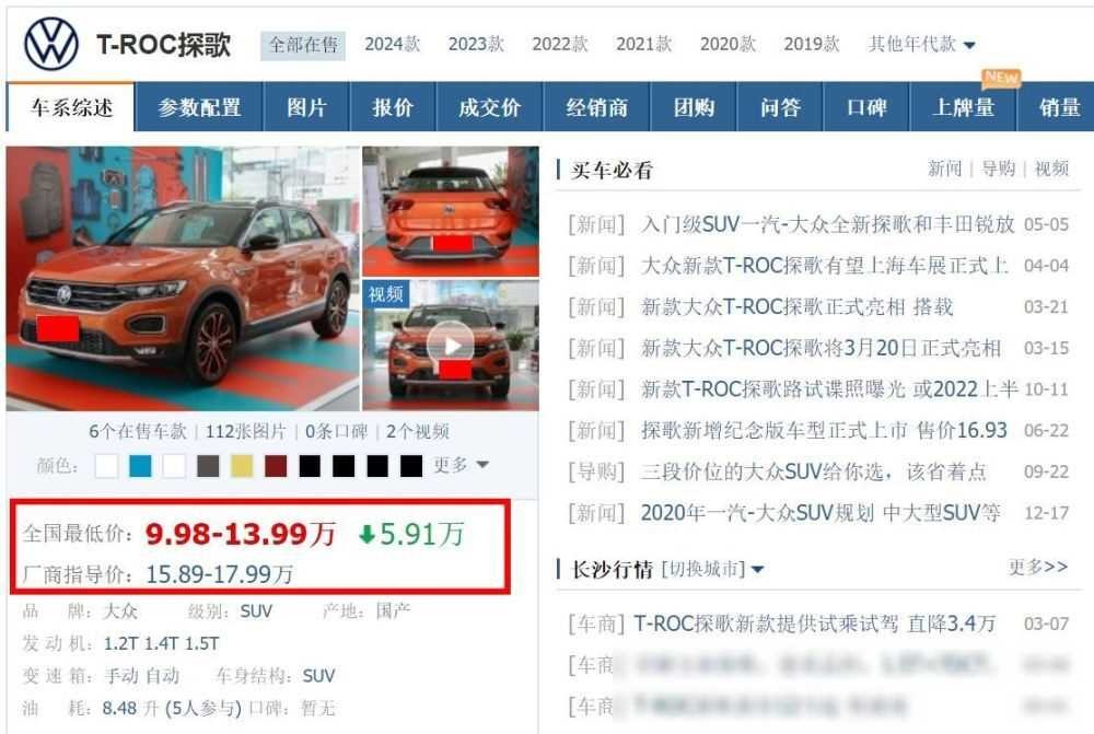 大众探歌大降价!直降5.91万,裸车仅10万起,速抢!