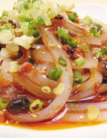 梓潼片粉是被誉为梓潼乡土的传统风味小吃三绝之一,食之有麻、辣、冲之味。秉性尚热,嚼之,柔韧凉爽,给人以寒。一道小食,寒热均俱,阴阳相宜,片粉,不仅吃起来味香爽口,解饥除渴,且具有清热解毒,益气通脉的功效。
