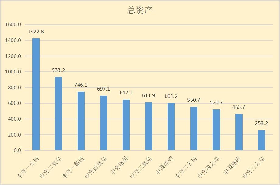 中国路桥、中交三公局总资产未能超过500亿元,排名较后。