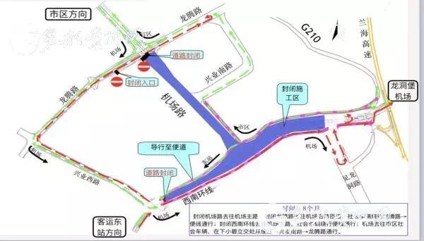 从经开区、龙洞堡片区往机场方向的车辆可从兴业西路、西南环线、机场路便道通行;
