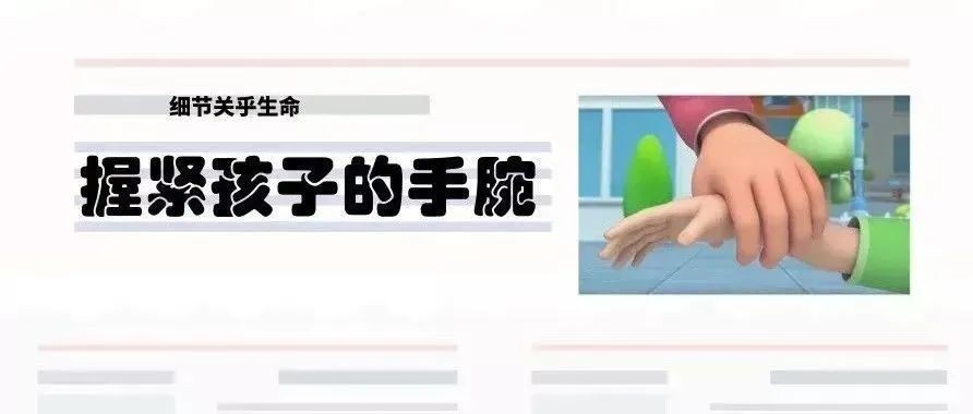 在过马路时,家长要紧握孩子的手腕,防止孩子突然挣脱,从而发生意外事故。记住,带孩子过马路最正确的方式不是牵着孩子的手而是牢牢握住孩子的手腕。