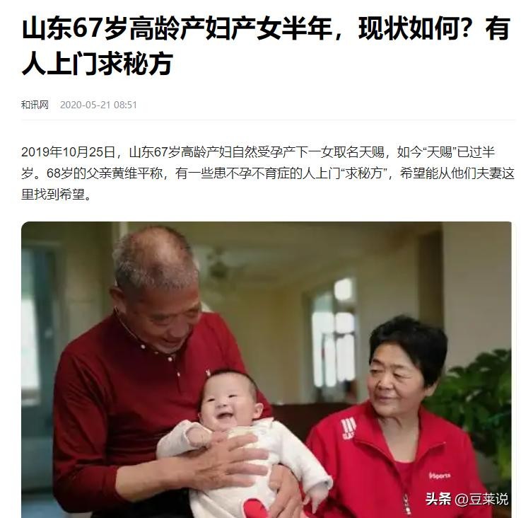 信息来源:和讯网2020.5.21——山东67岁高龄产妇产女半年,现状如何?有人上门求秘方