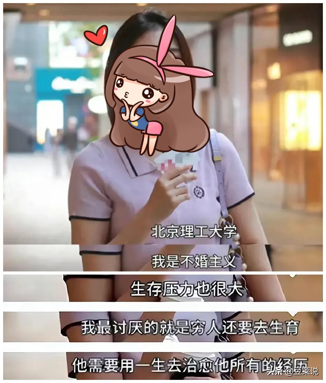 一位北京理工大学的女大学生在街头采访时说道:“我不打算结婚,最不喜欢看到穷人还生孩子。”