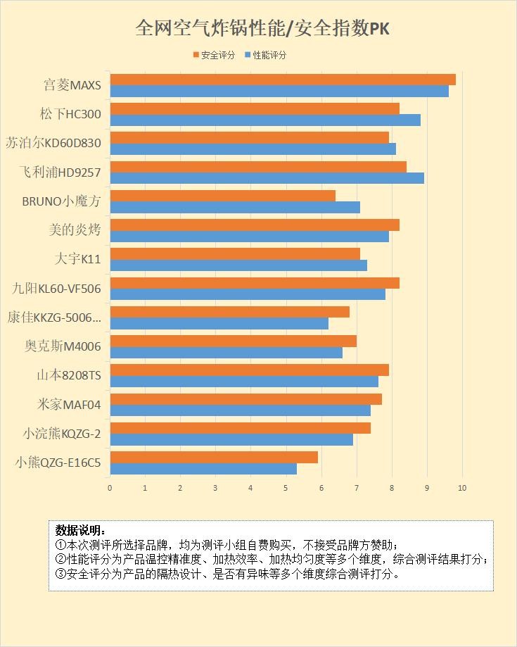 空气炸锅危害健康吗安全吗?在这些套路的精心围猎之下,普通人很容易陷身于不专业产品的汪洋大海,从此万劫不复!所以在购买空气炸锅时,大家一定要对这些套路有全面的了解,然后才能真正买到安全性有保证的高品质的空气炸锅!在此,本人提供一份空气炸锅性能性数据实测统计图,对大家在选购产品时相信用处多多。
