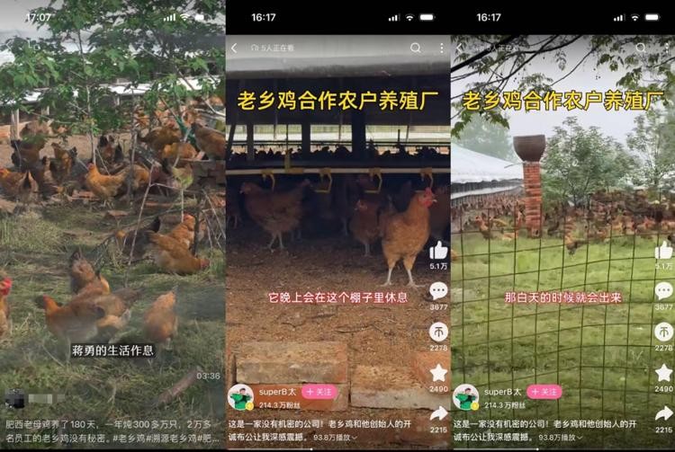 大众印象中,土鸡与大棚养殖鸡的主要区别之一就在于是否散养。何况老乡鸡在多个自媒体出镜的视频中,虽未直接提到散养二字,但也着力营造老母鸡在草地间悠哉踱步的氛围。