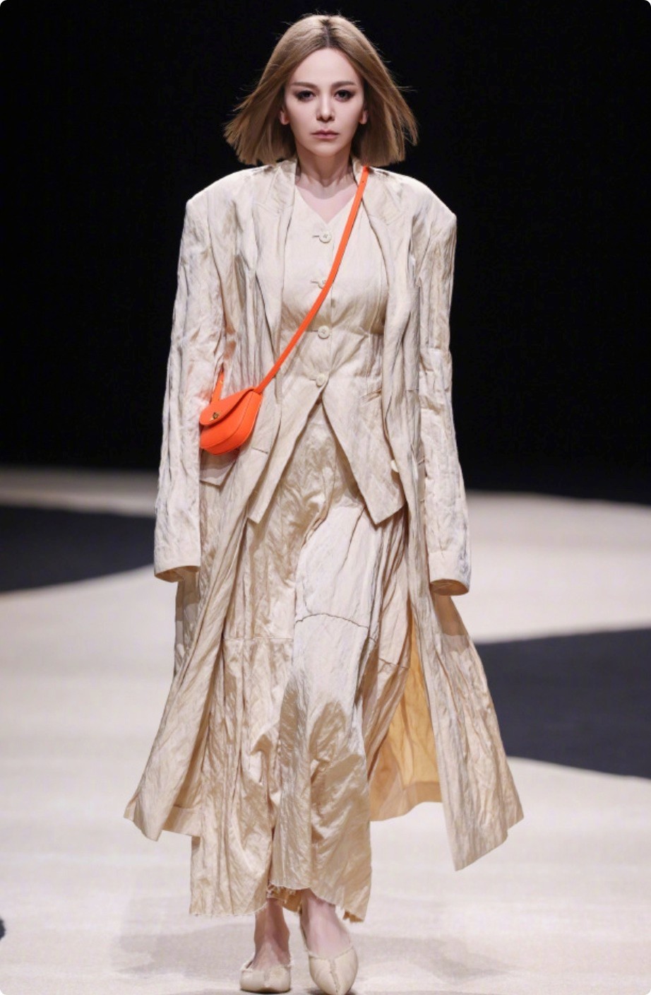 王琳53岁,身高168,在女明星的这个赛道里她的比例出众,身高恰到好处,但是在模特这个赛道,王琳身高不够,穿着这种长款的时装,也很容易像套了个大棉被。