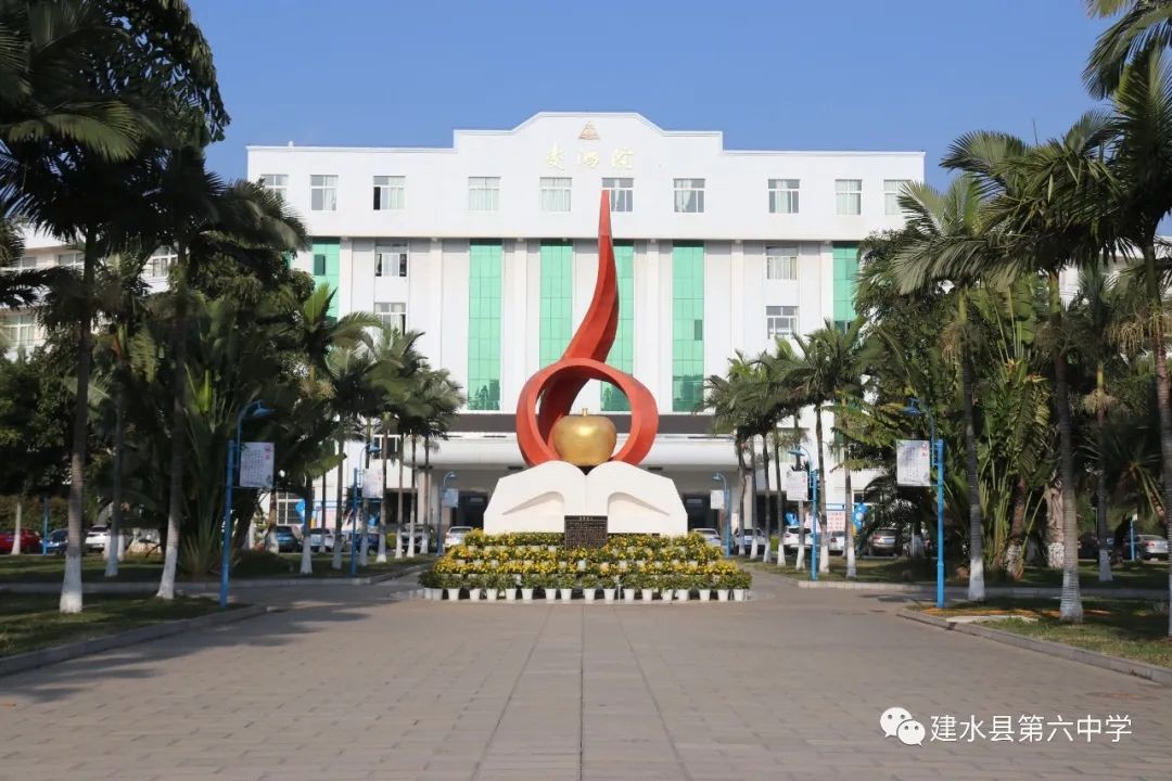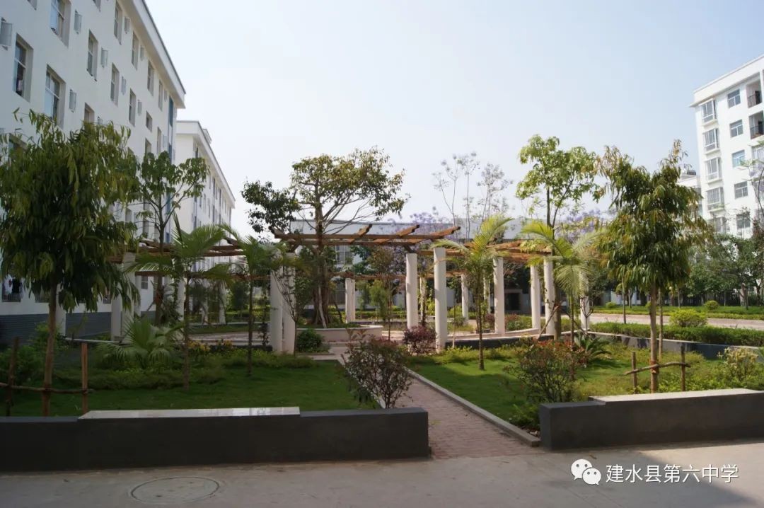 建水六中创办于1977年,1996年首批被认定为“云南省二级一等完全中学”,2020年晋升为“云南省一级三等高级中学”,跨入云南省优质高中行列。学校原校址为建水古城内关帝庙街50号的“黄锦民宅”,2005年搬迁至县城北部新区,并剥离初中成为一所高级中学。学校在校生3300多人,教职工273人(其中正高级教师1人,高级教师114人,中级教师94人,省级骨干教师4人,州级骨干教师4人,县级学科带头人14人,县级骨干教师40人)。学校占地152.5亩,布局合理,教学设备齐全(所有教室配置了“希沃”教学一体机、实物展示台、无尘白板),环境优美,是一所朝气蓬勃的现代化花园式学校。