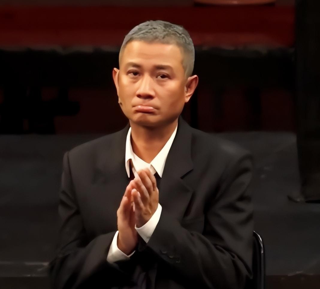 曾经的英俊小生,如今身材发福,面容憔悴,昔日的光辉早已不再。