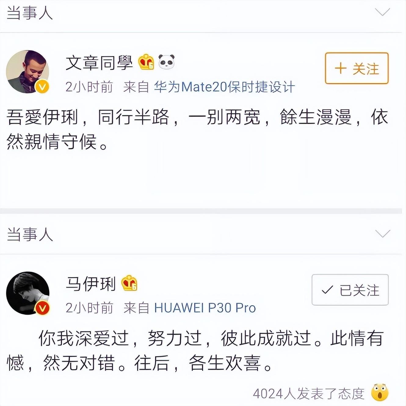 2019年,持续了11年的婚姻最终走到了尽头,两人通过微博发布了和平分手的声明,宣布感情的终结。