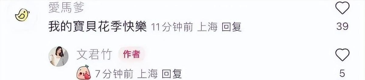 而文章则在社交平台上留言:“我的宝贝花季快乐。”他用“愛馬爹”这个昵称,表现了对女儿深厚的感情。