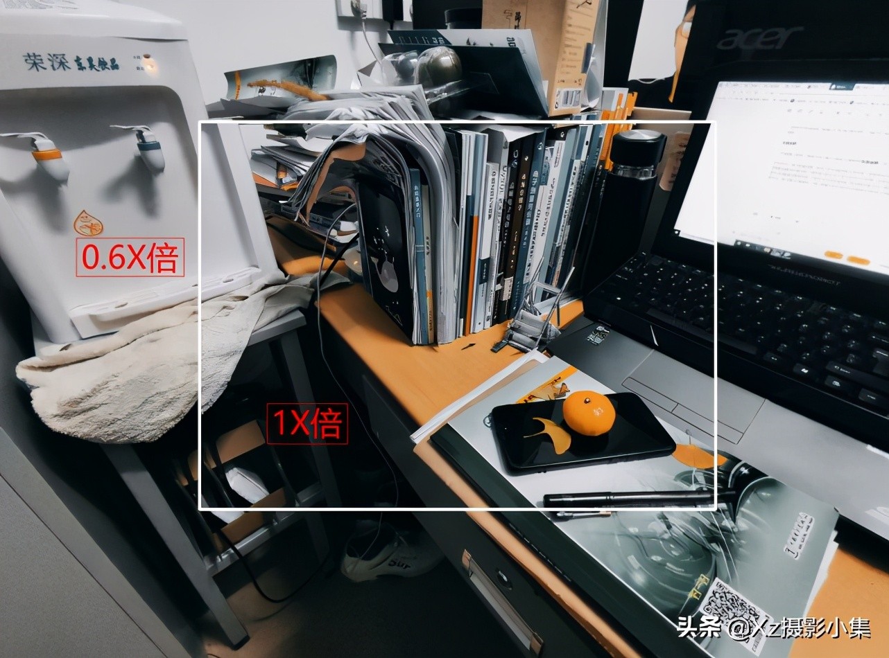 在生活中,我们想要拍摄一张自己房间桌面照片的时候,直接使用主摄像头的1X倍摄影模式,所能看到的场景也许就只是一两张桌子的大小,加上房间大小有限,没有足够远的地方为我们增加远视放大手机画面所看到内容。当你打开手机的超级广角拍照功能之后,能看到的视角足以看到半个房间大小,所以我们不难看出,超广角镜头所实现的作用就是为我们扩大视野。